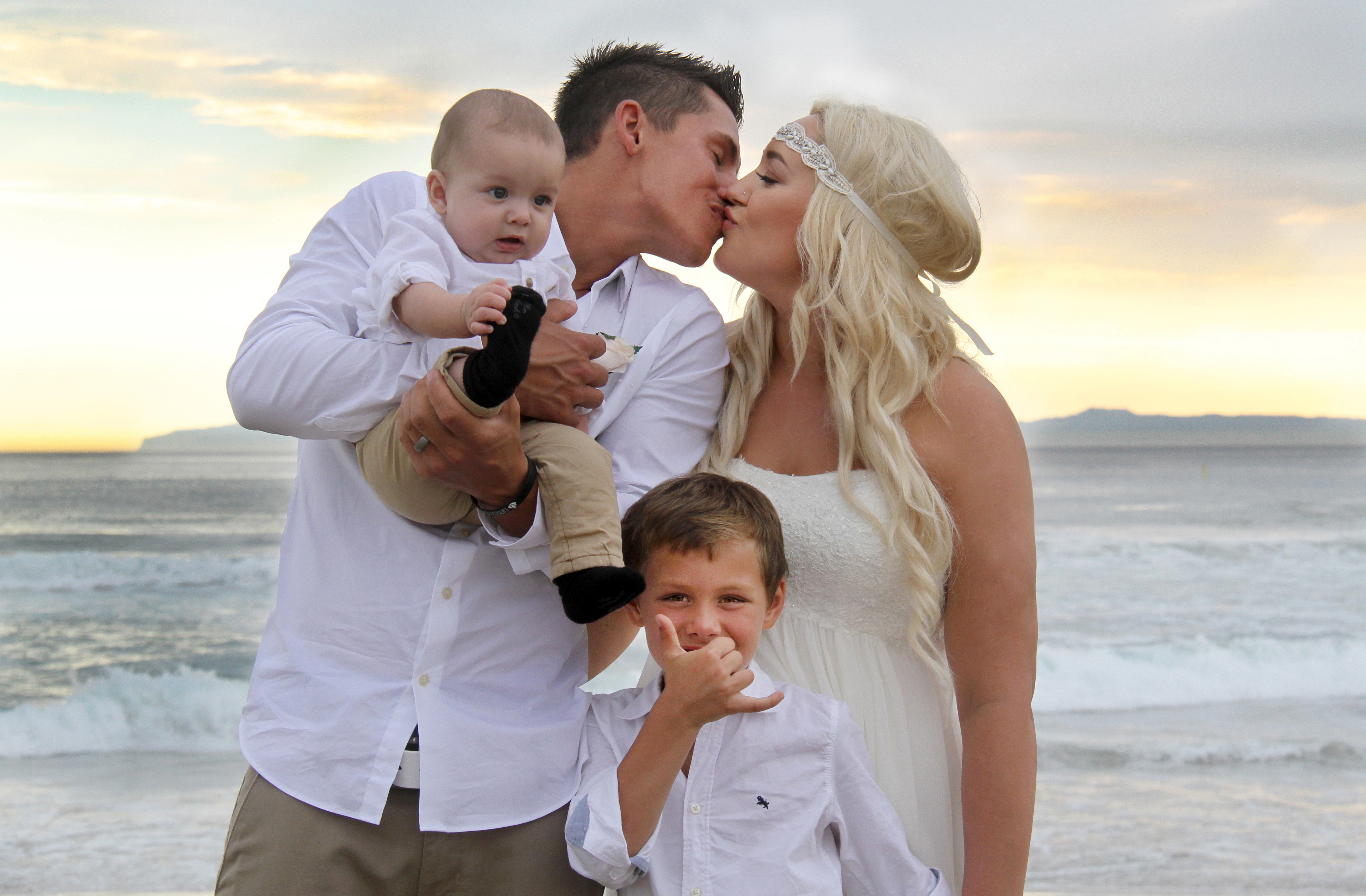 This particular wedding was held on a Monday. Many may ask why? It turns out it was the fourth anniversary of the couple, Ashley and Ryan, declaring their love for each other, next to Lifeguard Tower #9 in Huntington Beach. So both the date and location had symbolism: the ceremony was held next to Lifeguard Tower #9 in the late afternoon, providing some great sunset shots.
